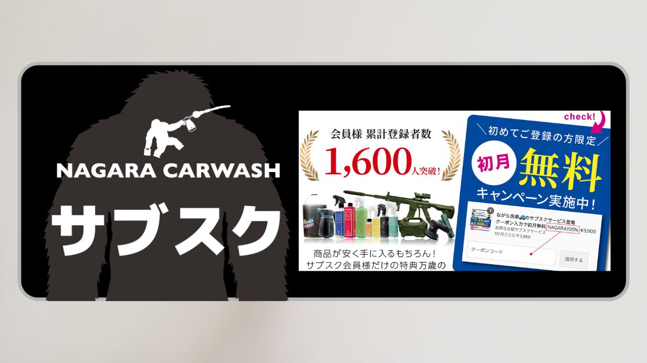 具体的には、「NAGARA100%」というクーポンコードが用意されており、これを決済画面で入力することで、サブスク料金の「初月無料」が適用されます。これは、月額3,900円のサービスが最初の1ヶ月間は無料で利用できるため、ながら洗車のサブスクがどのようなものか、実際に体験してみたいという方にとって、非常に魅力的な機会となるでしょう。